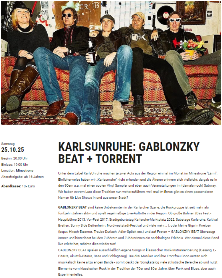 Samstag, 25. Okt. 2025, Substage - Minestrone (mit Special Guests: TORRENT)
